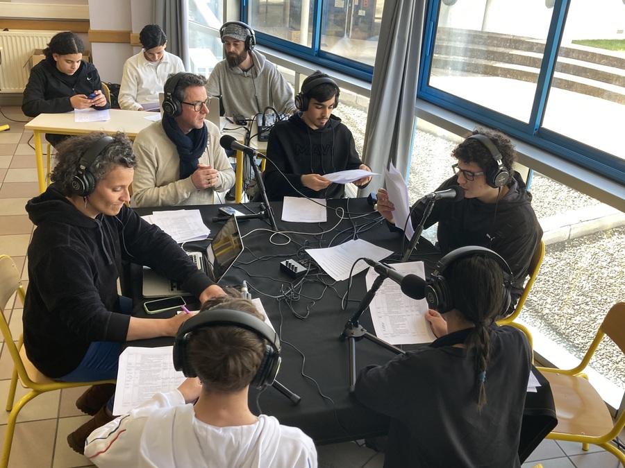 https://www.opera-lyon.comDerrière leurs micros, les élèves de 2nde professionnelle 2TIIN et 2MELEC ont suivi de près l'installation du camion-opéra sur le site du Meyrol du lycée des Catalins ! Les rencontres avec la chanteuse et le chanteur lyriques Laurence Pouderoux et Mathias Jaquot, l'accordéoniste Mélanie Brégant, la metteuse en scène Angélique Clairand, le directeur technique du camion Stéphane Laisné ainsi qu'avec Fabrice Paris, directeur technique de l'Opéra de Lyon, ont nourri la création de podcasts et la réalisation d'un plateau radio bientôt disponibles sur RadioCat' !